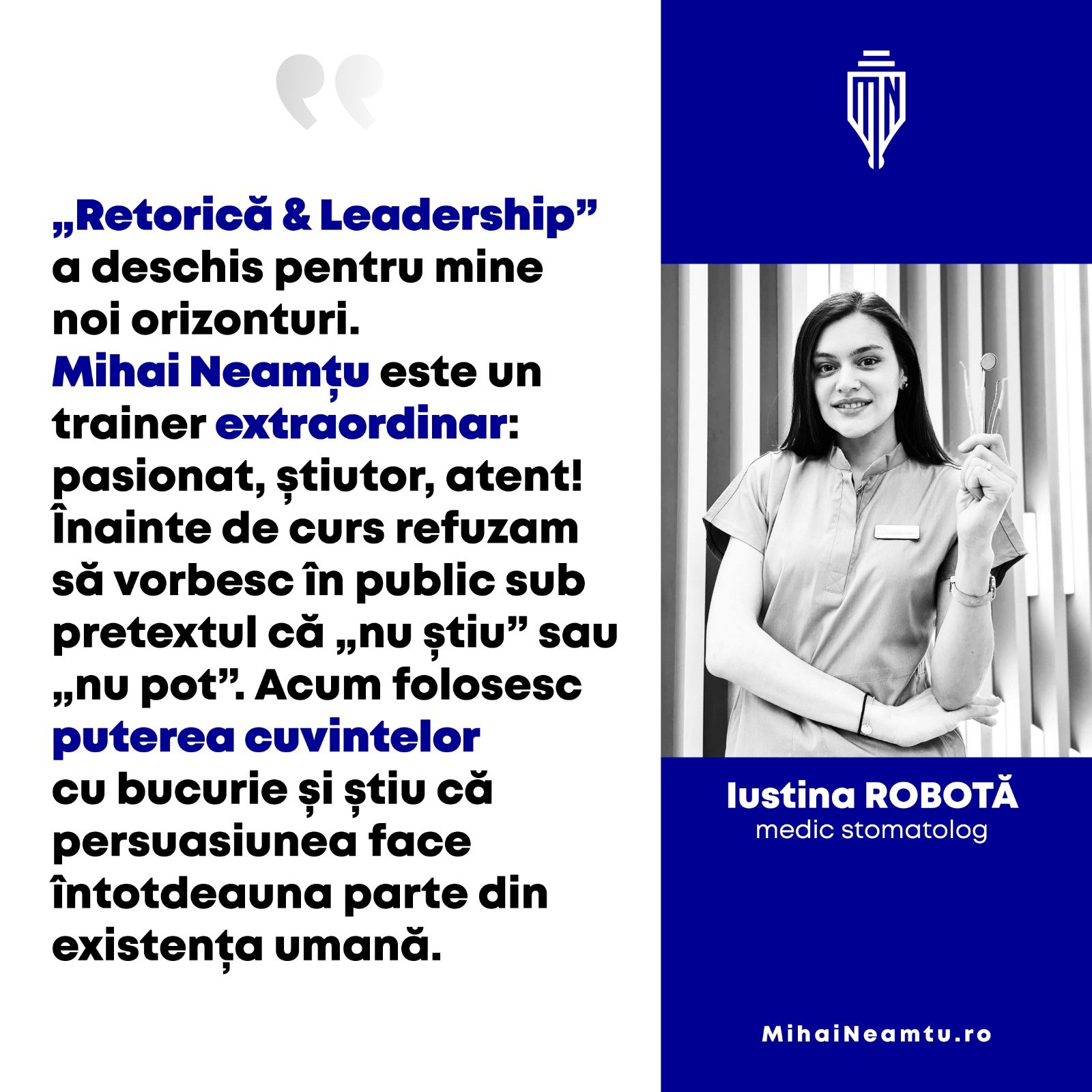 De aproape două decenii, recrutez, formez și promovez lideri în arta comunicării, antrenându-i pentru bătăliile vieții.